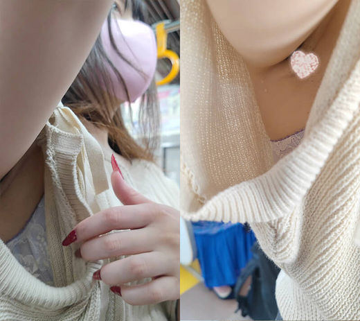 今回はそんな女性たちの中から、袖口のゆったりした半袖のニットを着た美女をターゲットにしました。